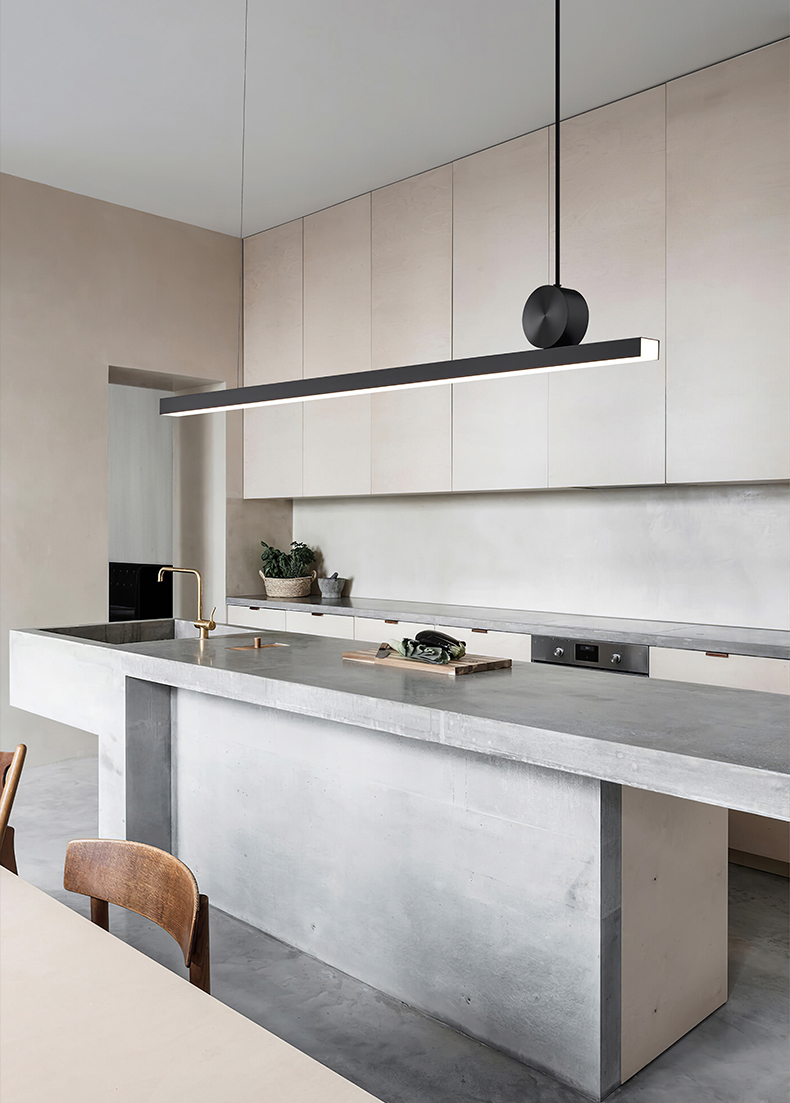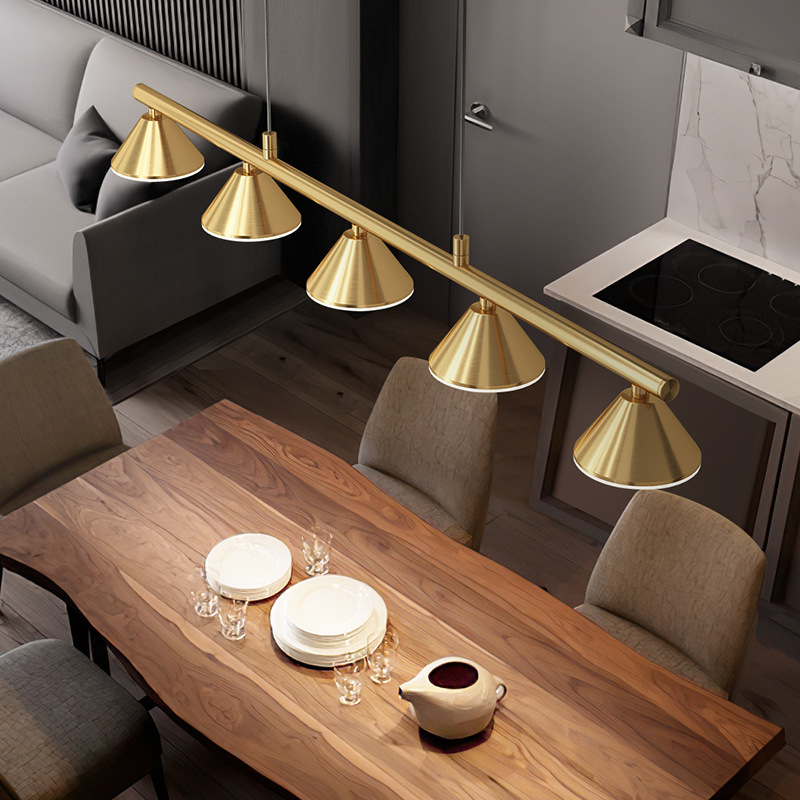 Modern minimalist restaurant chandelier geometric strip full copper bar intelligent dimming lamp