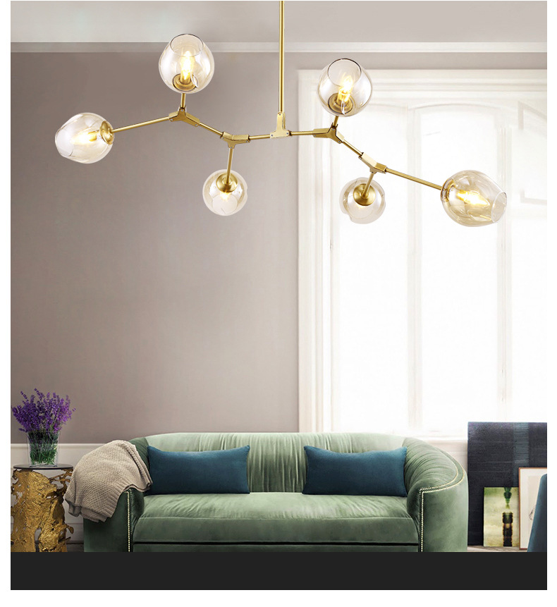 Nordic restaurant chandelier simple multi-head glass ball chandelier DNA molecule living room lamps